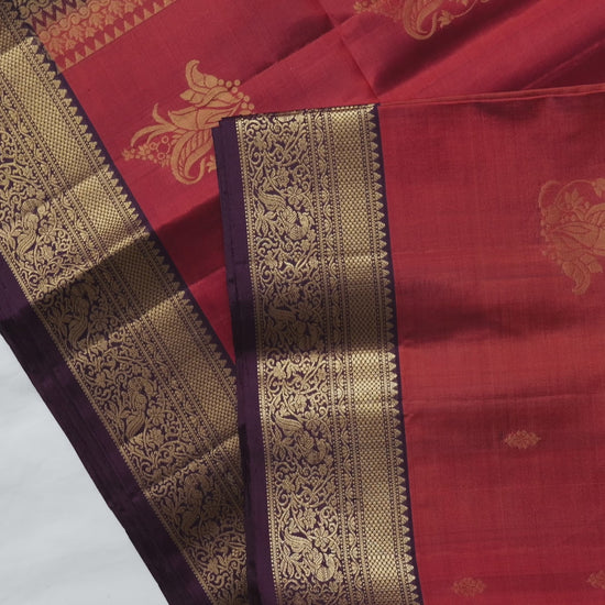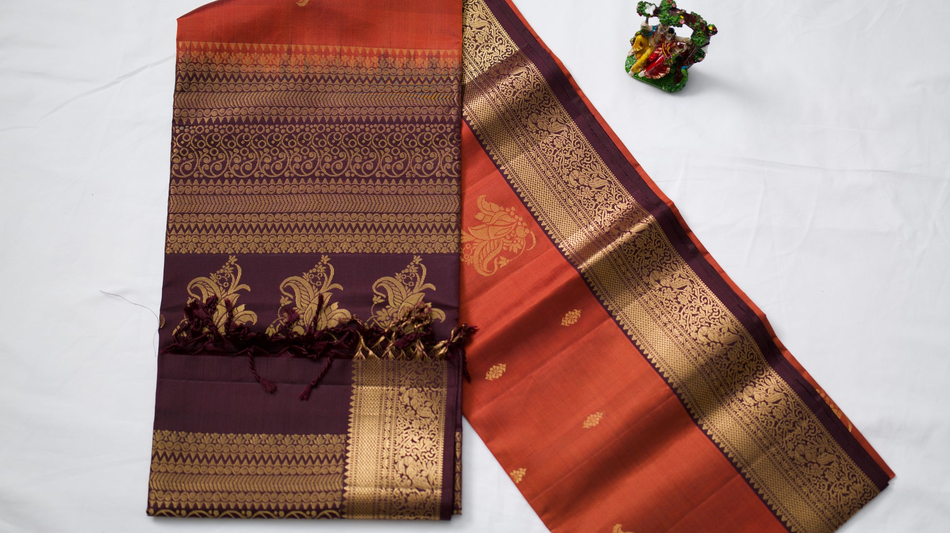 Vintage style Rust Orange Saree with brown pallu and blouse piece