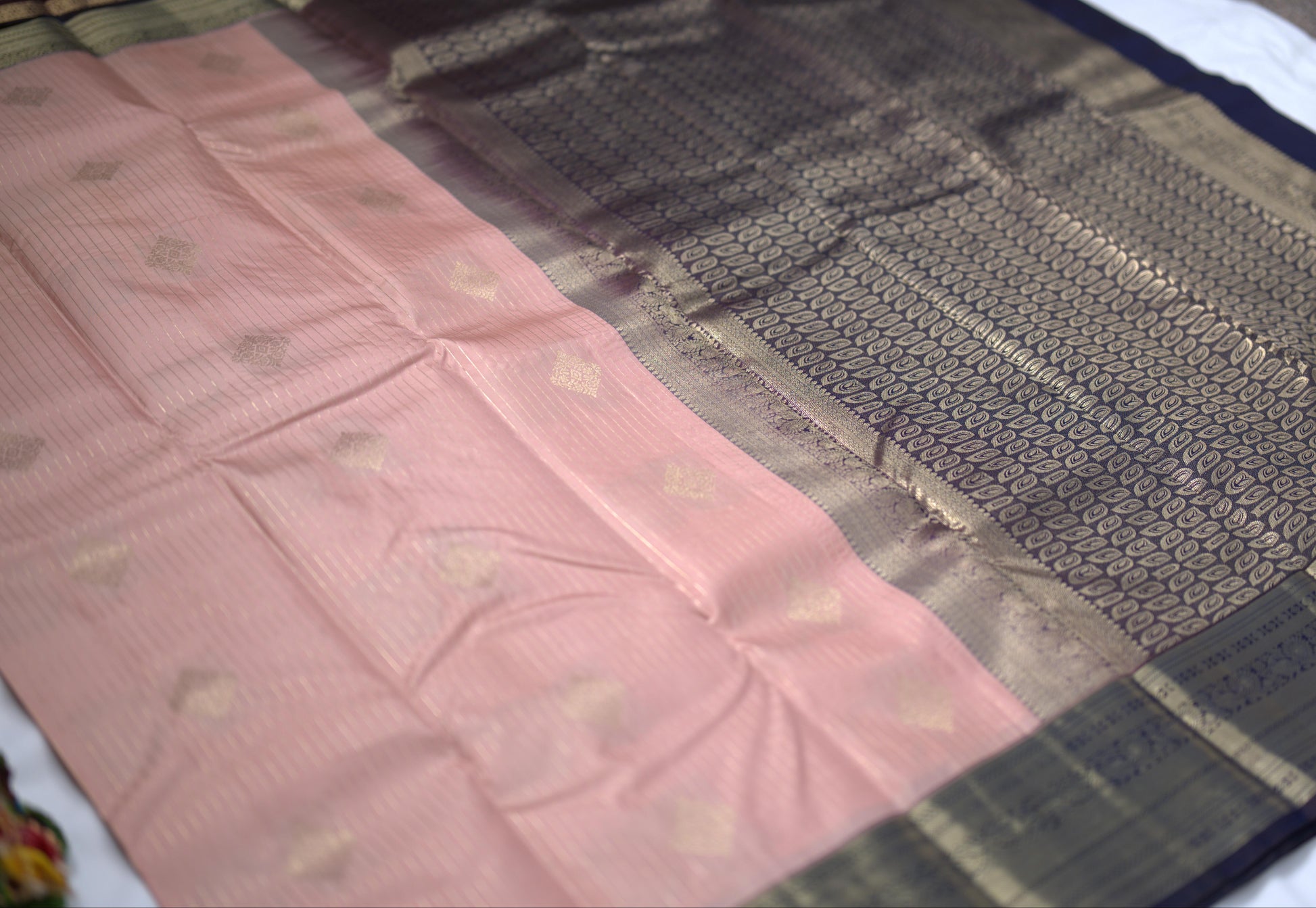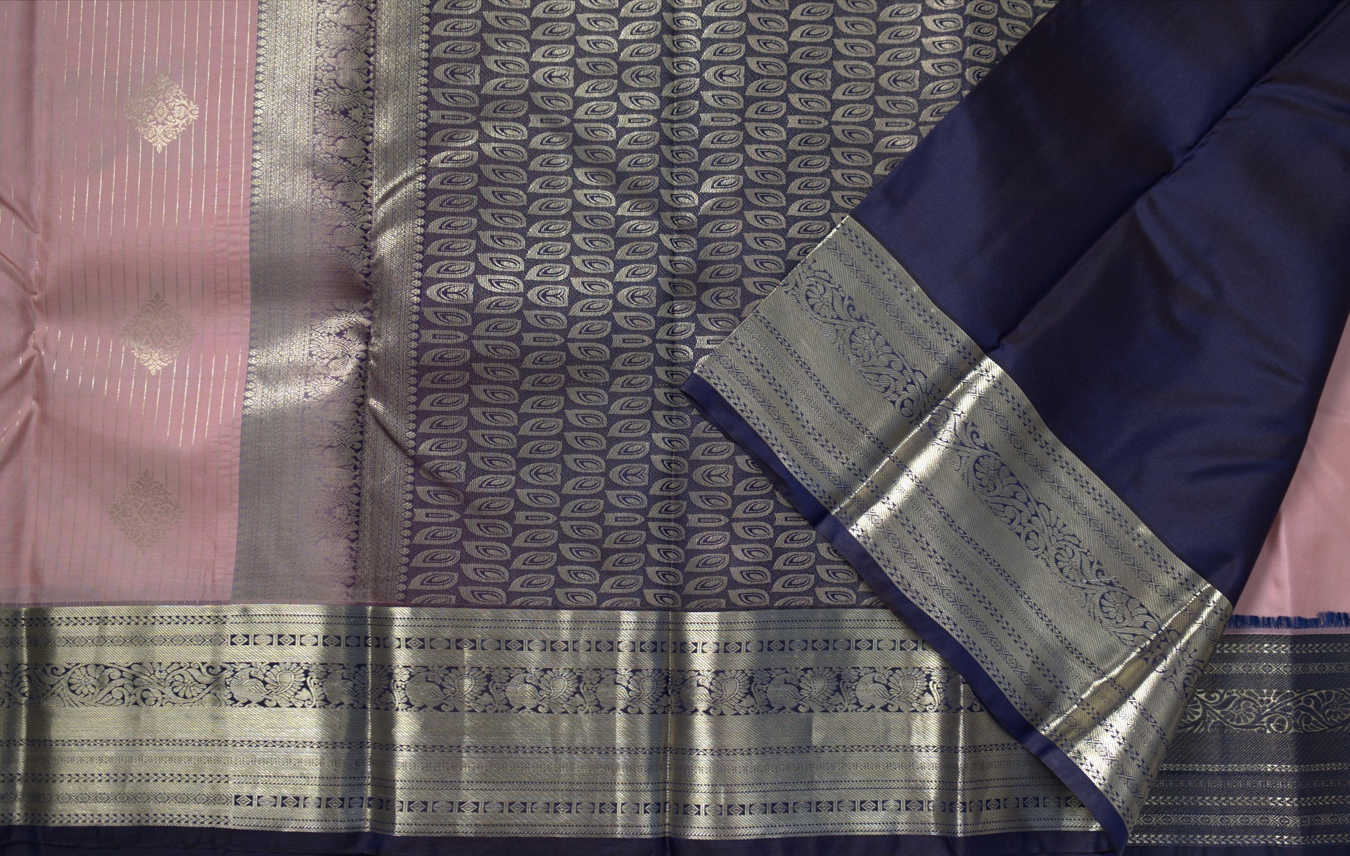 Blush Pink saree with Navy blue pallu and blouse piece