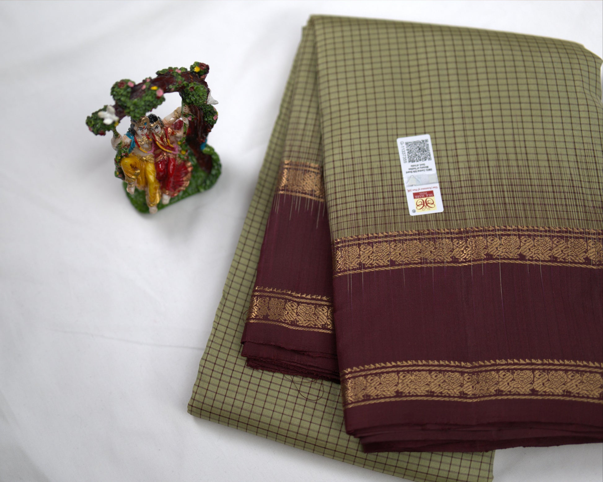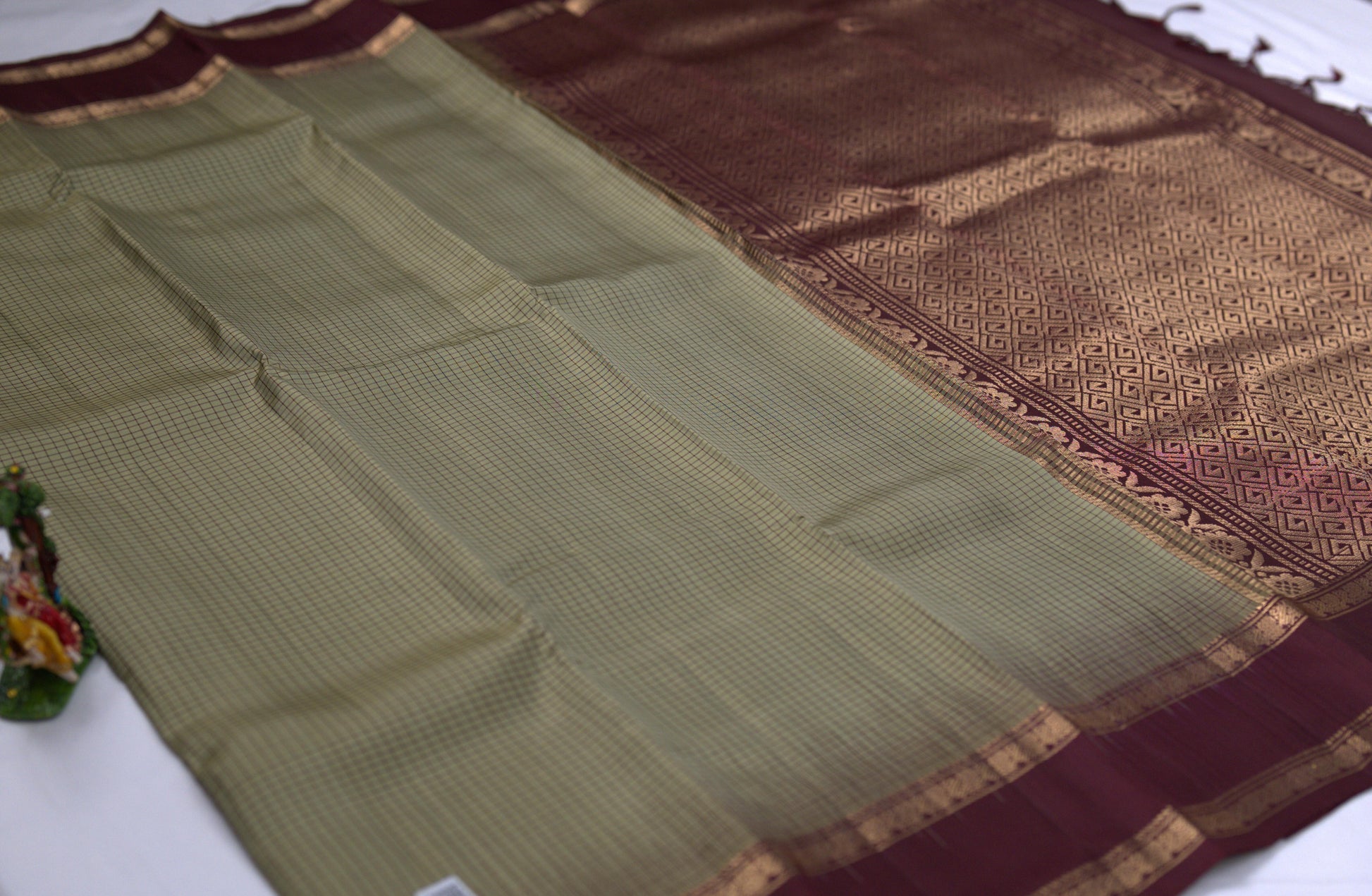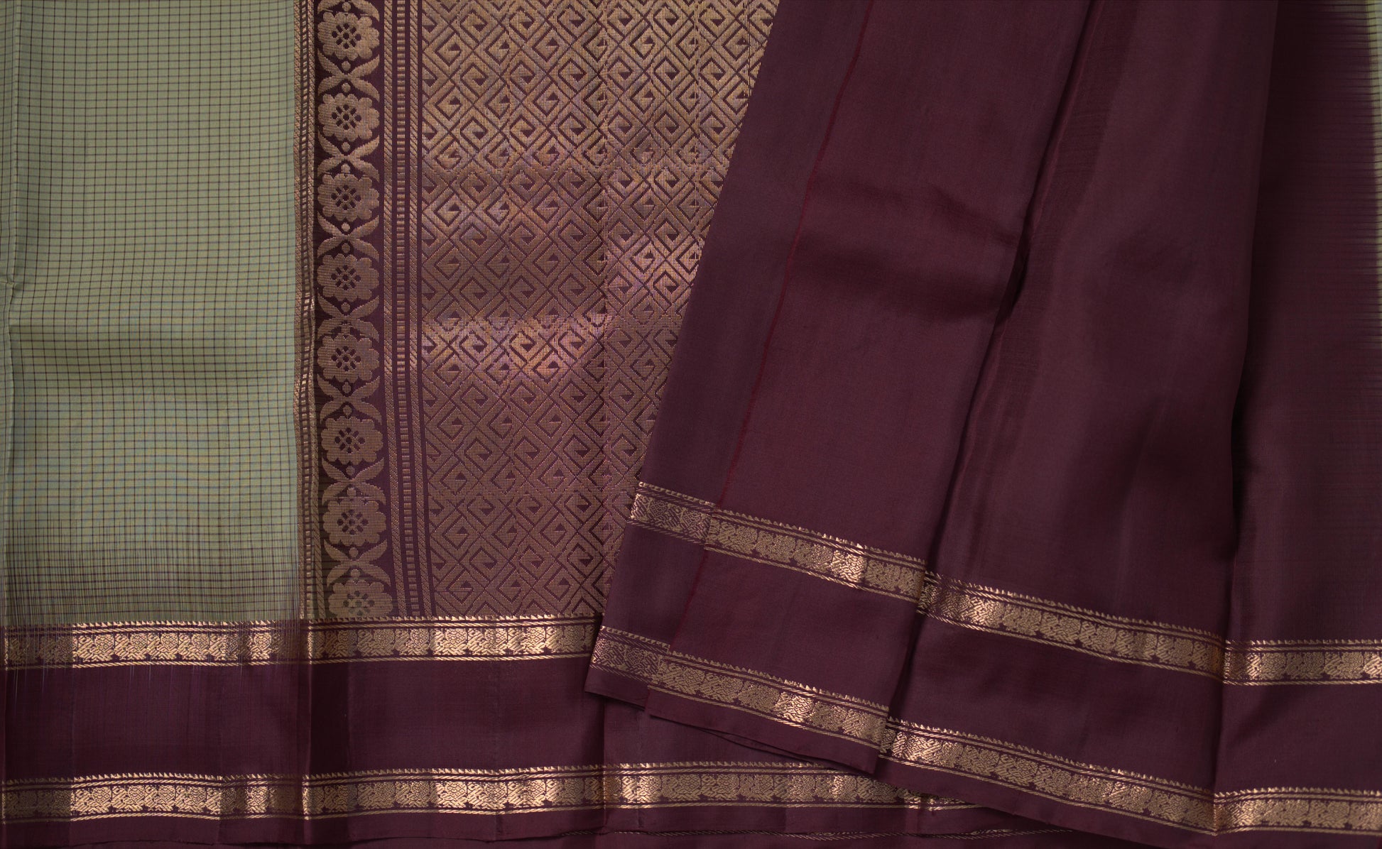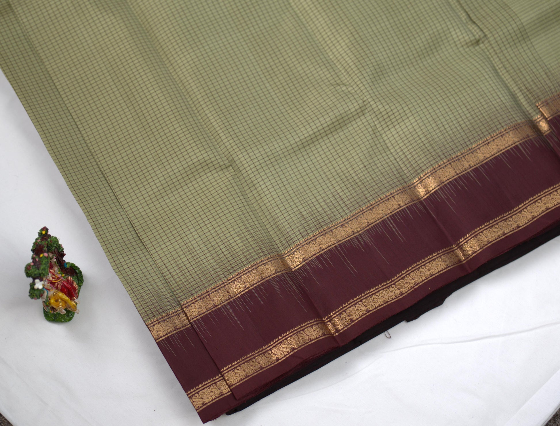 Green check saree with brown coloured pallu