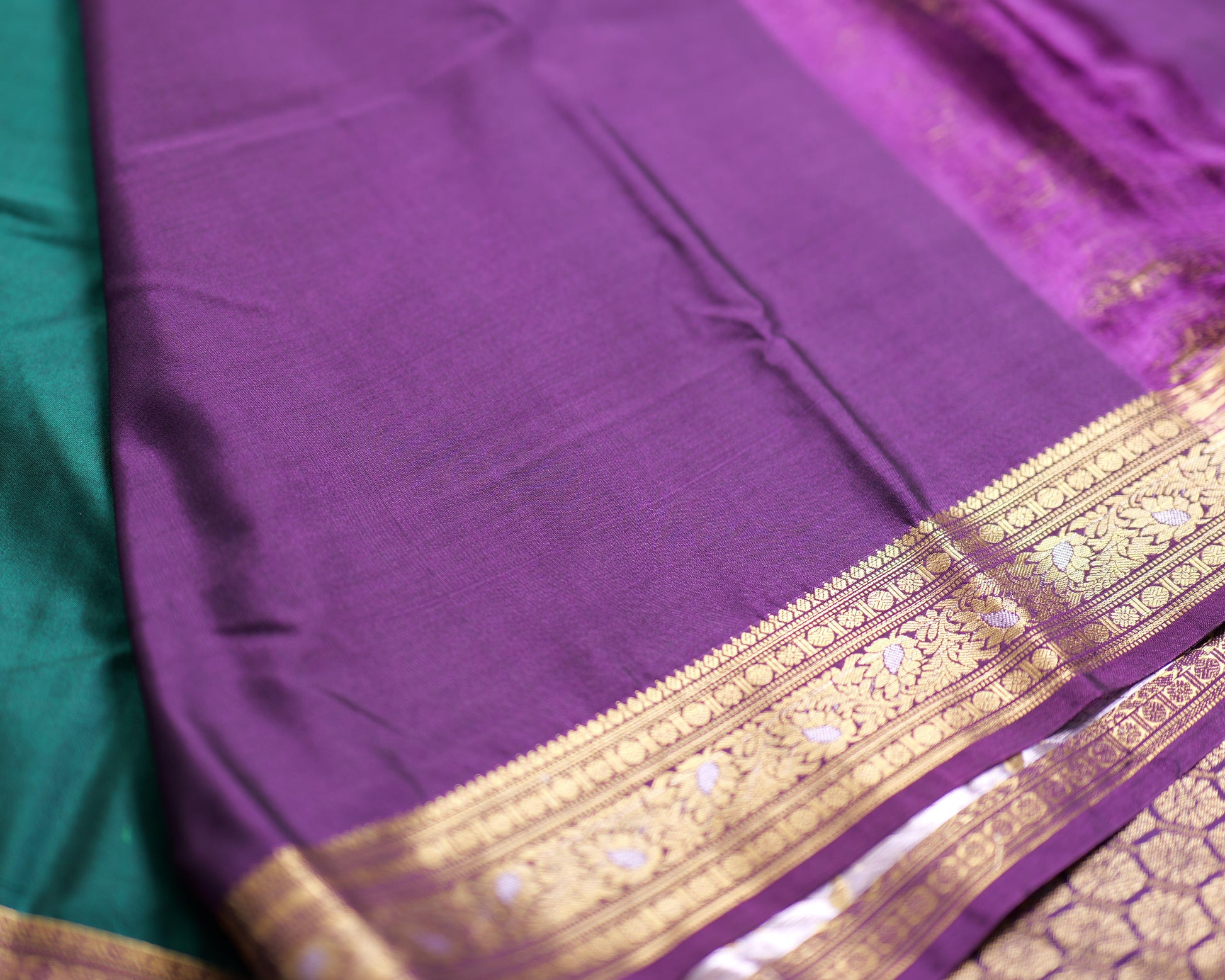 Greenish blue saree with purple border and pallu