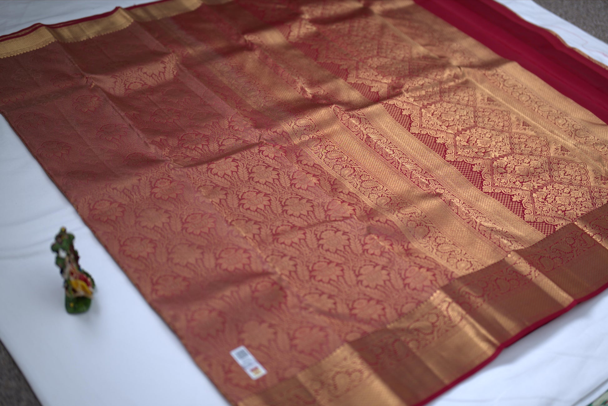 Red brocade saree with red pallu and blouse piece